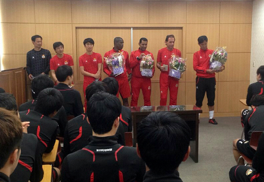 회의실로 들어선 최 감독은 예상치 못한 제자들의 이벤트에 환한 웃음으로 화답했다. 최 감독은 "이런 자리를 마련해 줘서 너무 고맙다"며 "현재 우리 FC서울은 중요한 경기들을 앞두고 있다. 모두 지금 분위기를 이어 좋은 결과를 거두자"며 경기장에서도 상승세를 이어가길 당부했다. 차두리와 선수단은 "선수들이 감사한 마음을 전하고 싶어 작은 선물을 준비했다. 항상 이끌어 주셔서 감사하다"며 준비한 꽃다발과 상품권, 운동복, 운동화를 전달했다.