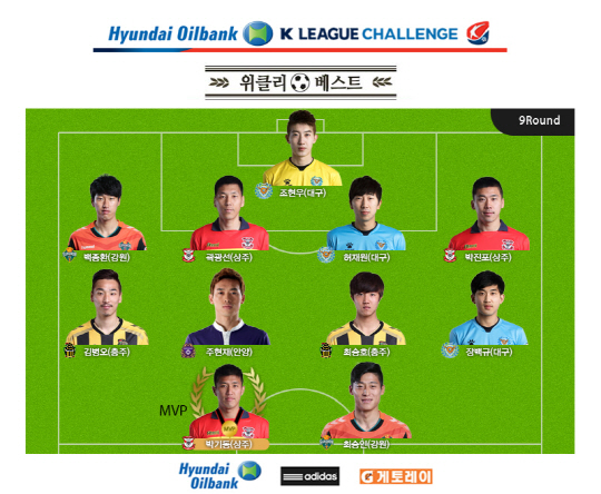 위클리 베스트 11 공격수 부문에는 박기동과 함께 최승인(강원)이 뽑혔고 미드필더 부문에는 장백규(대구), 최승호(충주), 주현재(안양), 김병오(충주)가 이름을 올렸다. 수비수는 박진포(상주), 허재원(대구), 곽광선(상주) , 백종환(강원)이, 골키퍼는 조현우(대구)가 뽑혔다. 강원FC가 서울 이랜드를 맞아 후반 들어 3골을 몰아친 끝에 4-2 승리를 거둔 경기는 위클리 매치로 선정됐다.