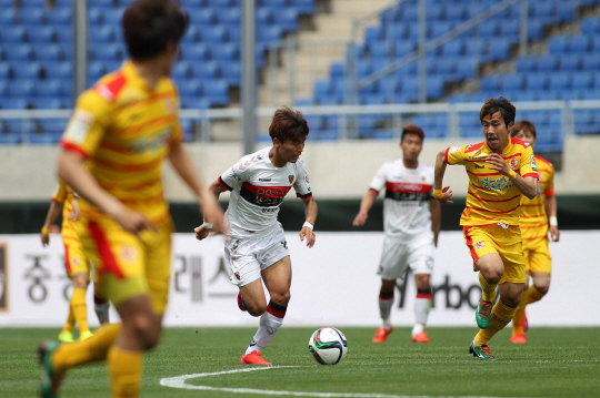 포항은 전반 10분 광주 진영을 돌파하던 라자르가 상대 수비수와 충돌하며 오른쪽 발목을 부상, 심동운을 내보내며 일찌감치 교체카드 1장을 소진했다. 광주는 압박을 앞세워 포항의 공세를 차단함과 동시에 송승민 임선영 이종민을 앞세워 공세를 전개했다. 전반 28분엔 송승민이 포항 진영 왼쪽을 돌파하다 올린 크로스를 임선영이 문전 쇄도하며 헤딩슛으로 연결하는 등 골찬스를 만들어냈다. 전반 39분엔 송승민이 포항 페널티에어리어 왼쪽에서 올린 오른발 크로스가 포항 수비수 배슬기의 머리에 맞고 골망 안으로 빨려 들어갔으나, 선심이 크로스 이전에 골라인 아웃을 선언하며 선제골 찬스를 놓쳤다. 광주는 전반 종료 직전에도 이종민이 아크 정면에서 얻은 프리킥 기회에서 오른발슛을 연결, 포항 골키퍼 신화용의 선방을 이끌어내는 등 좋은 분위기 속에 전반전을 마무리 했다.