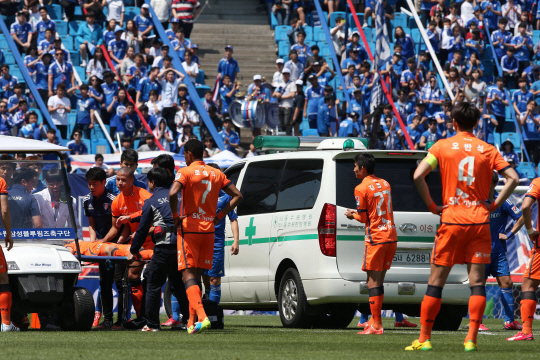 수원전을 앞두고 배기종과 양준아까지 부상으로 전력에서 이탈했다. 주전 6명(배기종 송진형 정다훤 이 용 양준아 김호준)이 빠지자 조성환 제주 감독은 부상에서 회복한 까랑가를 40여일만에 출격시켰다. 까랑가, 정영총, 강수일의 스피드로 수원 수비진을 공략할 생각이었다. 그러나 조 감독의 구상은 경기시작 2분만에 어긋났다. 정영총이 전반 2분 쓰러져 교체됐고, 심광욱을 급하게 투입했다. 일주일간 준비해 온 공격 전술은 정영총의 교체 아웃으로 물거품이 됐다. 혼란스러운 분위기가 이어졌고 조직력도 엇박자를 냈다. 제주는 전반에 단 3개의 슈팅에 그쳤다. 후반 24분 심광욱 대신 박수창이 투입되며 정상궤도에 올라섰지만 만회골은 터지지 않았다. 반대로 수비에서는 염기훈의 왼발을 막아내지 못했다. 조 감독은 스피드와 투지가 좋은 김봉래를 투입해 염기훈을 전담 마크시켰다. 염기훈 봉쇄법으로 '강한 압박과 거친 태클'을 꺼내 들었다. 그러나 세트피스에서는 무용지물이었다. 제주는 후반 11분 페널티박스 왼쪽에서 찬 염기훈의 프리킥을 막지 못해 무릎을 꿇었다. 수비 집중력이 아쉬웠다. 날카롭게 휜 염기훈의 프리킥 슈팅이 수비수와 골키퍼 사이에 떨어지며 바운드 된 뒤 골문을 통과했다. 조 감독은 "정용총이 조기 교체 되는 바람에 선수 운용에 어려움이 있었다. 조직력에 문제가 생겼다. 다른 방법으로 원정 징크스를 탈출하는 방법을 찾겠다"며 입술을 깨물었다.