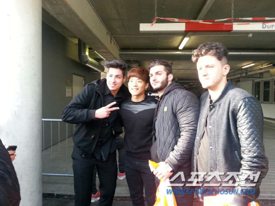◇관중석에서 내려오는 류승우를 알아본 팬들의 사인, 사진촬영 요청이 이어졌다. 브라운슈바이크(독일)=이명수 통신원