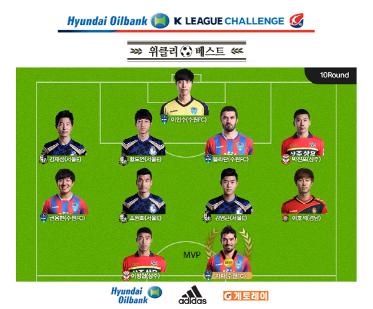 한편, 챌린지 10라운드 MVP는 2골을 넣은 자파(수원FC)가 차지했다. 자파를 비롯해 이정협(상주·이상 FW) 이호석(경남) 김영근 조원희(이상 서울 이랜드) 권용현(수원FC·이상 MF) 박진포(상주) 황도연 김재성(이상 서울 이랜드) 블라단(수원FC·이상 DF),이인수(수원FC·GK)가 베스트 11에 선정됐다. 하성룡 기자 jackiechan@sportschosun.com