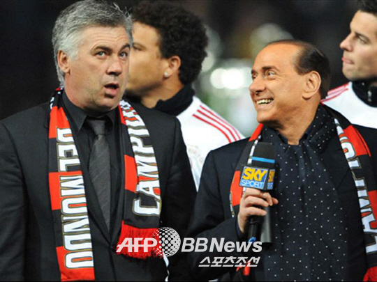 지난 2008년 AC밀란 시절 안첼로티 감독과 베를루스코니 구단주. ⓒAFPBBNews = News1
