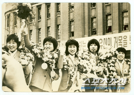 ◇1973년 사라예보세계탁구선수권에서 한국 구기종목 최초의 금메달을 딴 후 금의환향한 이에리사 의원 등 여자탁구대표팀. 스포츠조선 DB