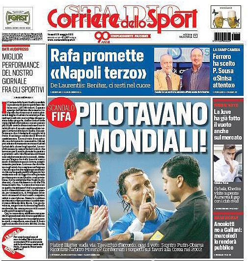 국제축구연맹(FIFA)의 부정부패 추문이 수면 위로 드러난 가운데, 이탈리아 매체가 2002월드컵 16강 우리나라와의 경기에 대한 승부조작 의혹을 제기하고 나섰다.