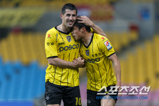 '팀플레이어' 스테보는 K리그 팬들이 가장 사랑하는 외국인선수다. 실력과 인성을 두루 갖췄다. 앉은 자리에서 된장찌개 두그릇을 뚝딱 비우고, 한국어 농담도 곧잘 하고, 한국인보다 더 한국적인 따뜻한 성품으로 그라운드 안팎에서 선후배들의 화합을 이끈다. 국민의례 때 어김없이 가슴에 손을 올리는 '한국 사랑'과 '존중'의 미덕 역시 화제가 됐다. 이종호, 안용우 등 전남 어린선수들의 멘토이자 롤모델로 '스테보'라는 이름보다 '테보형'이라는 애칭으로 불린다. '힘센 형' 스테보가 전남에 온 이후 어느 팀에 맞서도 지지 않는 '불패의 정신'은 '전남의 정신'이 됐다. 노상래 전남 감독은 "경기를 준비하는 자세, 경기에 임하는 투지, 팀에 녹아드는 모습 모든 면에서 귀감이 되는 K리그 최고의 외국인선수"라고 엄지를 치켜세웠다. 31일, 경기 이튿날 오전 회복훈련, 전남 선수단은 '테보형'의 100포인트 쾌거를 힘찬 박수로 축하했다. 전영지 기자 sky4us@sportschosun.com