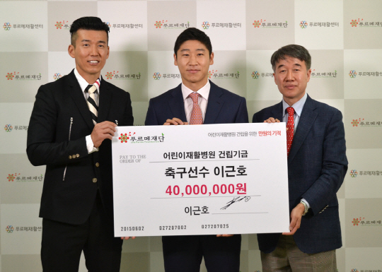 푸르메재단은 서울 상암동에 어린이재활병원을 건립 중이다. 지난해 3월 착공해 지상 7층, 지하 3층(병상 100개) 규모로 지어지며 연간 15만명의 장애 어린이가 치료받을 수 있는 어린이재활병원은 2016년 봄에 개관할 예정이다. 이근호는 병원 건립을 위해 기부금을 전달했다.