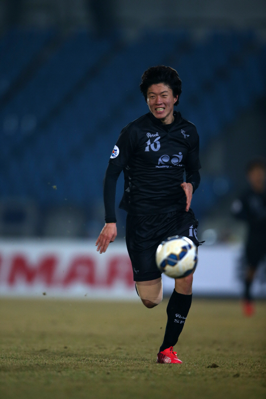 지체할 틈이 없었다. 수비수 2명을 앞에 둔 상황. 아크 정면에서 지체없이 오른발슛을 날렸다. 낮게 깔린 볼은 곧 왼쪽으로 휘어지더니 제주 골키퍼 김호준의 손을 비켜가며 오른쪽 골문 구석에 꽂혔다. 3일 제주월드컵경기장에서 열린 제주-성남 간의 2015년 현대오일뱅크 K리그 클래식 14라운드 후반 33분에 터진 성남 공격수 황의조(23)의 중거리포였다.