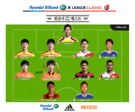 베스트 수비수에는 최재수(수원) 이경렬(부산) 김영빈 이종민(이상 광주)이 선정됐다. 최고의 수문장으로는 울산의 파상공세를 동물적인 움직임으로 수차례 선방을 펼친 부산의 이범영이 꼽혔다.