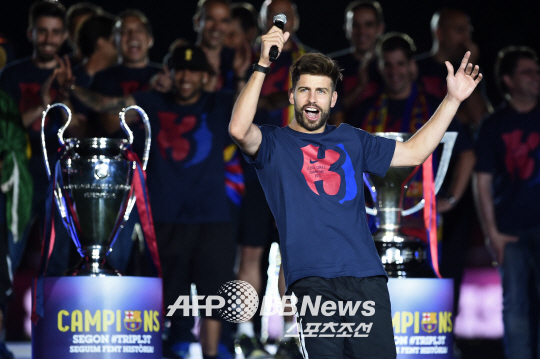 | 트레블 축하행사에 참여한 피케. ⓒAFPBBNews = News1 |