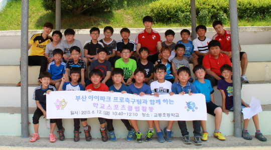 프로축구 부산 아이파크가 부산 동래구에 위치한 교동초등학교를 방문해 학생들과 함께 축구로 하나되는 시간을 가졌다.