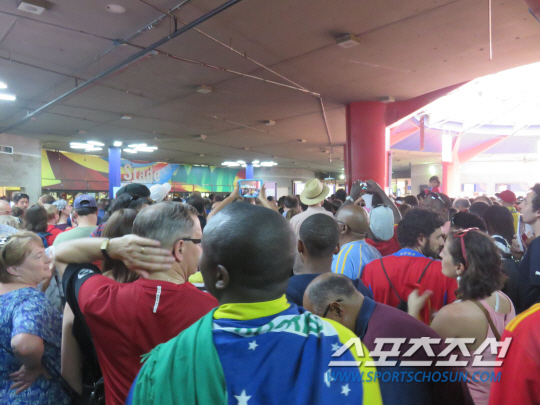 경기장내 공식 기념품 숍에는 E조 한국, 브라질, 스페인, 코스타리카 기념 티셔츠가 내걸렸다. 일찌감치 경기장을 찾은 축구팬들은 해당국가의 티셔츠와 응원도구를 구입하며, 설레는 표정을 감추지 못했다.