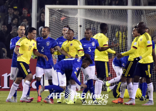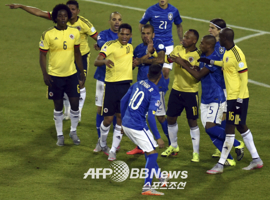 브라질은 18일(한국시간) 칠레 산티아고에서 열린 2015 코파아메리카 C조 조별리그 2차전에서 콜롬비아의 헤이손 무리요(23·그라나다)에 결승골을 허용, 0-1로 패했다. 이로써 브라질은 1승1패(승점 3점)을 기록, 베네수엘라 전 결과에 따라 조별리그 탈락이라는 최악의 상황까지 우려하게 됐다.