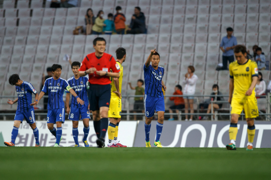 이날 울산은 경기 시작부터 꼬였다. 전반 12분 유준수가 인천 공격수 케빈과 신경전을 벌이다 '박치기'로 곧바로 퇴장 명령을 받았다. 이후 10명이 싸운 울산은 후반 16분 인천 김진환에게 선제골까지 내주면서 패색이 짙어졌다. 김신욱의 해결사 기질이 발휘되지 않았다면 지난 전북전 역전패에 이어 또 무승 부진에 빠지는 악몽을 꿔야 했다.