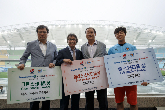 프로축구연맹은 20일 대구월드컵경기장에서 2015년 현대오일뱅크 K리그 챌린지(2부 리그) 2015년 1차 '풀-플러스-그린 스타디움상' 시상을 진행했다.