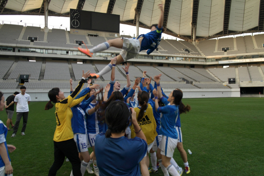 연세대가 21일 서울월드컵경기장에서 열린 'FC서울과 서울월드컵경기장이 함께하는 서울컵 2015' 전기리그 여자부 결승전에서 이화여대를 꺾고 초대 챔피언에 등극했다.