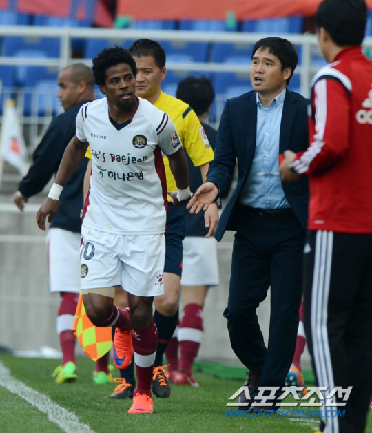 수비가담이 여전히 아쉬웠다. 대전 같이 전력이 떨어지는 팀은 전방부터 압박을 함께 해줘야 한다. 그런 의미에서 아드리아노는 계륵이었다. 아드리아노의 결정력은 아쉽지만, 전술상 포기해야 했다. 최 감독 하에서 아드리아노는 더이상 부동의 선발이 아니었다. 달라진 분위기에 아드리아노도 발을 맞췄다. 지난 광주전부터 적극적인 수비가담을 시작했다. 제주전에서는 과감한 압박으로 볼을 뺏어낸 장면을 여러차례 만들었다. 최 감독도 아드리아노의 모습에 엄지를 치켜올렸다. 최 감독은 "아드리아노가 지난 경기부터 수비가담을 적극적으로 받아들이고 있다. 공격이 끝난 후 내려왔다가 전환할때 위치가 아직 아쉽지만 경기를 거듭할수록 좋아지고 있다"고 했다.