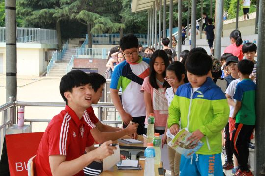 클리닉이 끝나고 진행된 사인회에서는 동원초등학교 전교생이 몰려들어 사인요청이 쇄도했다. 이로 인해 당초 예정된 일정에 차질이 생길 정도였고 결국 담당 선생님의 중재로 겨우 행사를 종료할 수 있었다고 한다.
