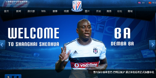 상하이 선화는 27일(한국시각) 구단 홈페이지를 통해 뎀바 바 영입을 발표했다. 영국 일간지 데일리메일에 따르면, 뎀바 바의 몸값은 900만파운드(약 158억원)이었다.
