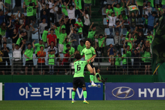 90분의 대혈투였다. 전북과 전남의 '호남더비'는 불볕더위마저 잊게 만들 만큼 시원했고, 화끈했다. K리그 클래식 '1강' 전북과 리그 3연승의 전남이 28일 전주월드컵경기장에서 열린 클래식 18라운드에서 2골씩 주고 받는 화력 대결 끝에 2대2 무승부를 기록했다.