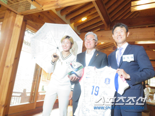 이어진 오찬 자리, 김종덕 장관이 따뜻한 환영사를 건넸다. "남자대표팀은 월드컵 16강까지 48년 걸렸는데 여자대표팀은 12년 걸렸다. 정말 자랑스럽다"고 치하했다. "이번 대회를 보면서 기쁨, 감동을 느꼈다. 출정식에서 여자축구선수로 살아가는 것이 외로웠다고 한 선수의 말을 기억한다. 코스타리카전 윤덕여 감독께서 국민께 죄송하다고 하셨는데 오히려 제가 주무장관으로서 제가 더 죄송하고 미안했다"고 털어놨다. "그동안 많은 관심이 없었음에도 최선을 다해준 선수 및 코치진에게 감사드린다. 저희도 더 열심히 노력하겠다. '척박한 환경속에서 여자대표팀이 대단했다'는 감탄으로 끝나지 않게 하겠다. '반짝' 관심 아닌 일상의 관심과 응원이 되도록 노력하겠다"고 약속했다. " 여자대표팀뿐 아니라 WK리그, 그리고 꿈을 키워가는 어린 선수들이 건강하게 축구할 수 있도록 좋은 환경을 만들겠다"고 했다. "지난 25일 대한축구협회에서 여자축구 활성화 TF 팀 구성 계획을 발표했다. 문체부도 여자축구의 저변을 넓히고 활성화하고 계획의 수립부터 실천까지 적극적으로 참여하고 돕겠다. 단기적, 1회성 지원 아닌 장기적 지원이 되도록 하겠다"고 말했다. "어제 재개된 WK리그 경기에 국민적 관심이 많이 높아졌다고 들었다. 저도 WK리그 팬이 되겠다. 시간을 내서 멋진 경기를 관람하겠다"고 약속했다. 식사에 앞서 여자축구대표팀과 김 장관은 마음이 담긴 선물을 주고받았다. 윤덕여 감독과 주장 조소현은 캐나다여자월드컵 공인구에 선수 전원의 사인이 담긴 축구공과 '오타와 16강 미라클' 스페인전 역전골을 이끈 김수연의 유니폼에 전선수들의 사인을 담아 선물했다. 김 장관은 전통문양이 담긴 우산을 답례로 건넸다. 여자축구의 든든한 우산이 되겠다는 마음이 읽혔다. 기념사진 포토타임, 조소현이 센스있게 우산을 '활짝' 펼쳐들었다. 대한민국 여자축구, 웃음꽃이 활짝 피었다.