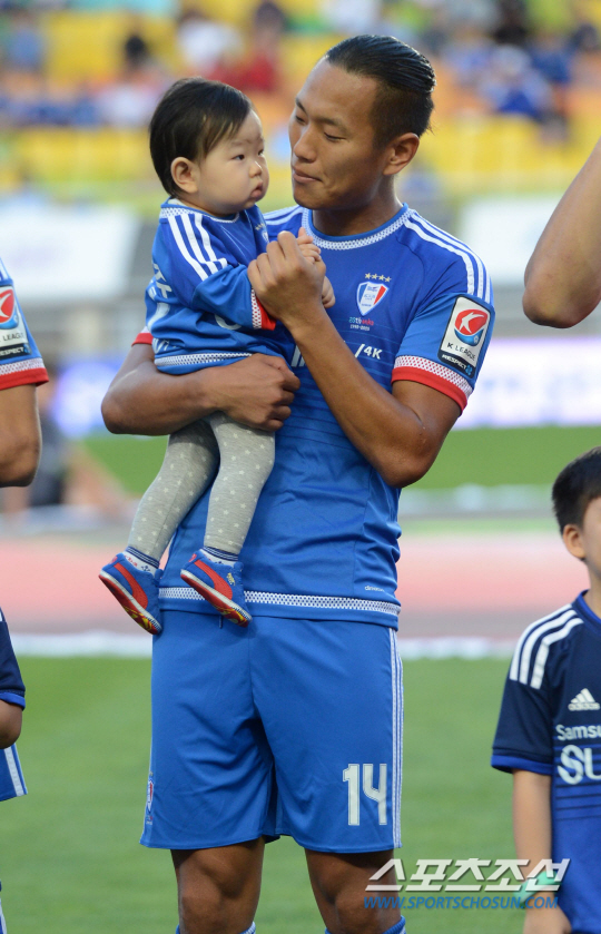 수원 삼성과 울산 현대의 2015 K리그 클래식 19라운드 경기가 1일 수원월드컵경기장에서 열렸다. 수원 정대세가 아들과 함께 그라운드에 나와 경기시작을 기다리고 있다. 수원=허상욱 기자 wook@sportschosun.com/2015.07.01/