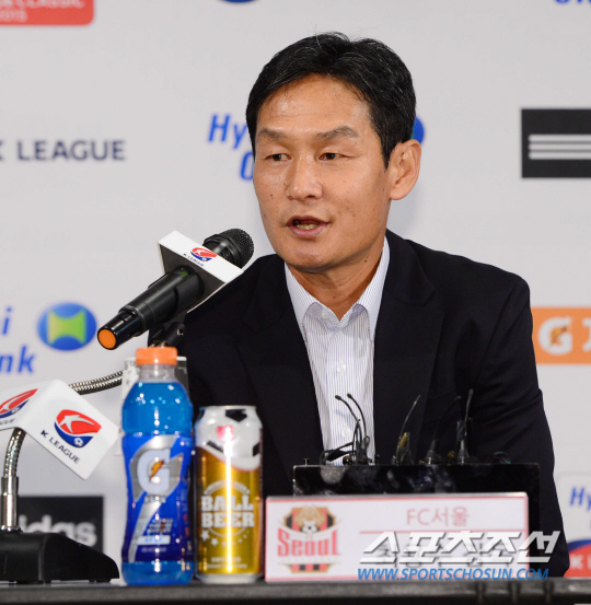 기자회견에서 서울 최용수 감독이 취재진의 질문에 답하고 있다.
