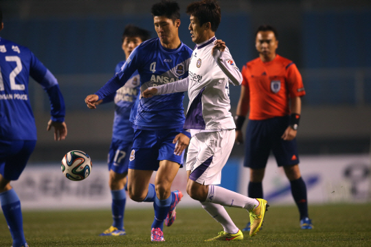 안산은 경기 시작 8분 만에 고양에게 페널티킥을 허용하며 위기에 몰렸다. 키커로 나선 김유성의 오른발슛에 실점하면서 리드를 내줬다.