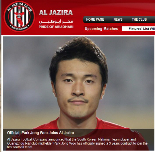 알자지라는 6일(한국시각) 구단 홈페이지를 통해 '한국의 국가대표 출신인 미드필더 박종우와 3년 계약을 했다'고 밝혔다.