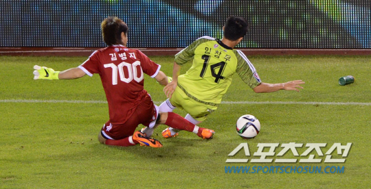 올스타전에서 각 팀은 2명의 골키퍼가 포진했다. 김병지는 선택의 여지가 없었다. 김승규가 없는 골문을 홀로 지킬 수밖에 없었다.