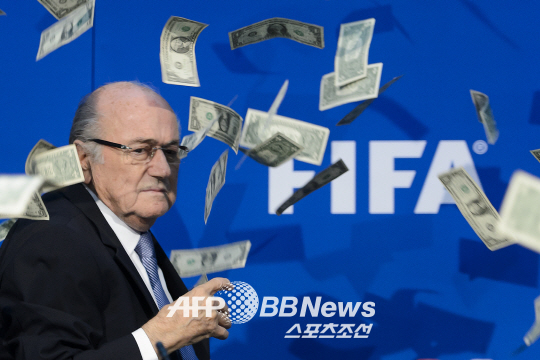 돈벼락은 이때였다. 영국의 코미디언인 사이먼 브로드 킨이 단상위로 난입했다. 그러더니 US달러 지폐 뭉치를 집어던졌다. 물론 가짜 지폐였다. 외신들은 이 코미디언이 블래터 회장에게 "이 돈이면 2026년에 북한에서 월드컵을 개최할 수 있겠느냐"며 외쳤다고 보도했다. FIFA와 블래터 회장의 부패 심각성을 조롱했다. 이 건 기자 bbadagun@sportschosun.com