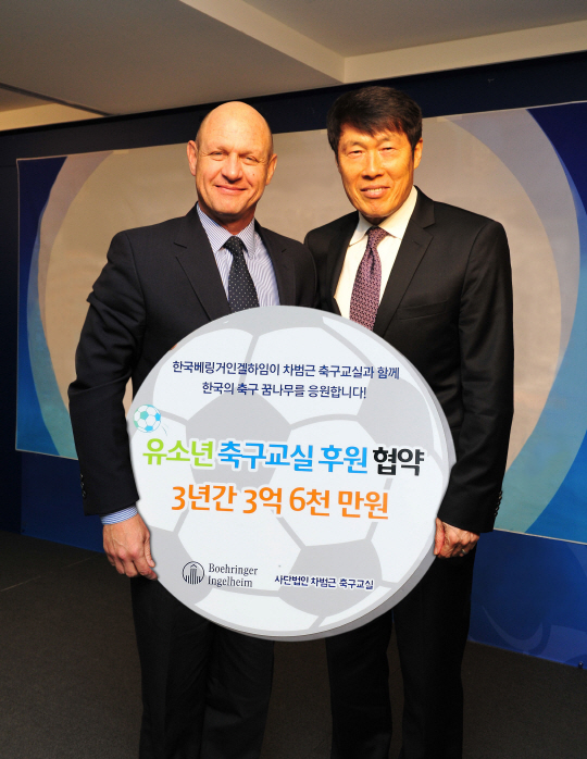 독일 제약회사인 한국베링거인겔하임이 차범근 축구교실을 후원한다. 향후 3년간 3억6000만원을 지원한다.