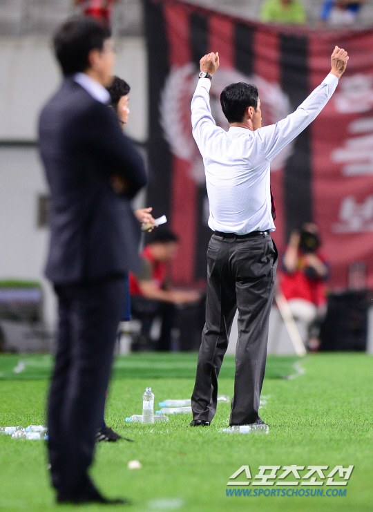22일 오후 서울 상암동 서울월드컵경기장에서 2015 FA컵 8강전 FC서울과 포항의 경기가 열렸다. FC서울은 박주영의 두 골로 포항에 승리하며 4강에 진출했다. 경기 종료와 함께 환호하고 있는 최용수 감독. 상암=송정헌 기자 songs@sportschosun.com/2015.07.22 |