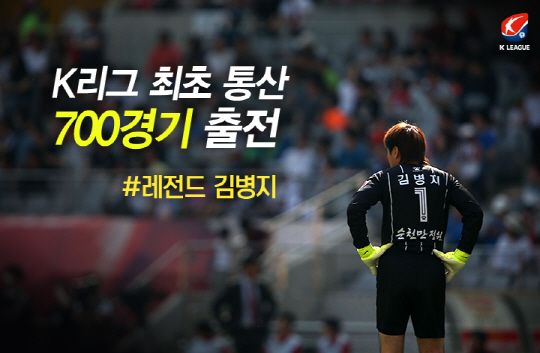 김병지(45·전남)가 K리그 최초 통산 700경기 출전 달성을 앞두고 있다.