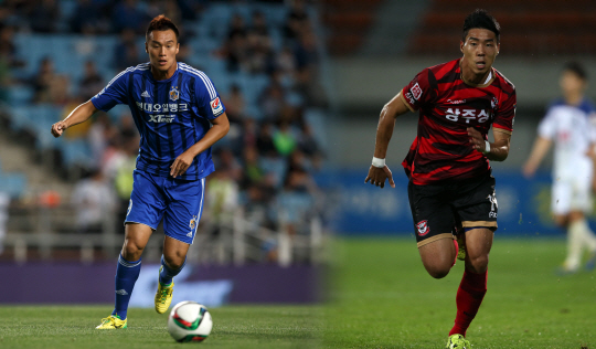 김신욱(27·울산)과 이정협(24·상주)이 그간 걸어온 길이 그랬다. 2014년 브라질월드컵 이후 한국 축구 간판 공격수는 김신욱이었다. 인천아시안게임에서 '금빛 전설'을 쓰면서 명실상부한 원톱의 자리에 서는 듯했다. 하지만 부상 악령을 피하지 못했다. 아시안게임이 한창일 때 A대표팀의 새 수장이 된 울리 슈틸리케 감독과는 스쳐 지나갔다. 호주아시안컵의 꿈도 그렇게 날아갔다. 김신욱의 빈 자리를 채운 것이 이정협이었다. 누구도 예상하지 못했던 선발이었기에 의심과 비난의 화살이 쏟아졌다. 하지만 이정협은 스스로의 실력으로 '우려'를 '환희'로 바꿔놓았다. 이정협은 호주아시안컵에서 원톱 역할을 맡아 준우승에 일조하며 '슈틸리케호의 황태자' 칭호를 받았다.