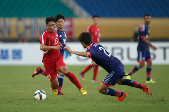 북한은 2일(한국시각) 중국 우한스포츠센터스타디움에서 가진 일본과의 2015년 동아시안컵 1차전에서 2대1로 역전승 했다. 당초 열세가 점쳐졌던 북한은 후반 중반 이후 체력이 떨어진 일본을 몰아붙인 끝에 연속골로 승부를 뒤집으면서 만만치 않은 상대임을 과시했다. 전원 J리거로 이번 대회에 나선 일본은 최약체로 지목됐던 북한에 덜미를 잡히면서 2013년 우승에 이은 대회 2연패 목표에 빨간불이 켜졌다.