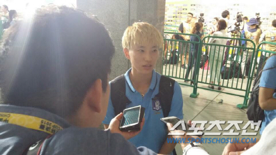 강유미(화천 KSPO)가 우한의 무더위에 혀를 내둘렀다. 한국 여자대표팀은 1일(한국시각) 중국 우한스포츠센터에서 열린 중국과의 2015년 동아시안컵 여자축구 1차전에서 전반 27분 터진 정설빈의 결승골을 앞세워 1대0 승리를 거뒀다. 습도 73%의 악조건 속에서 거둔 귀중한 승리였다. 강유미는 측면 공격수로 출전해 날카로운 돌파와 크로스로 한국의 공격을 이끌었다. 경기 후 믹스트존에서 만난 강유미는 "전반부터 정신 못차리고 있었는데 끝까지 열심히 뛰었다. 결과가 좋아서 기쁘다"고 소감을 밝힌 뒤, "월드컵 보다 더 힘들었다. 날씨가 엄청 덥고 숨도 엄청 차고 체력소모가 진짜 많았다"고 했다.
