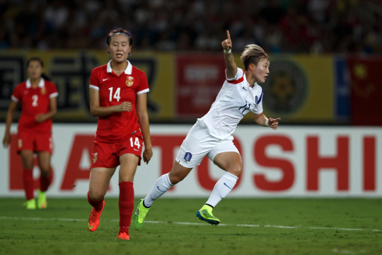 만리장성을 무너뜨렸다. 윤덕여 감독이 이끄는 한국여자축구대표팀이 1일 중국 우한스포츠센터에서 열린 중국과의 2015년 동아시안컵 여자축구 1차전에서 1대0으로 승리했다. 전반 27분 정설빈(인천 현대제철)이 결승골을 넣었다.