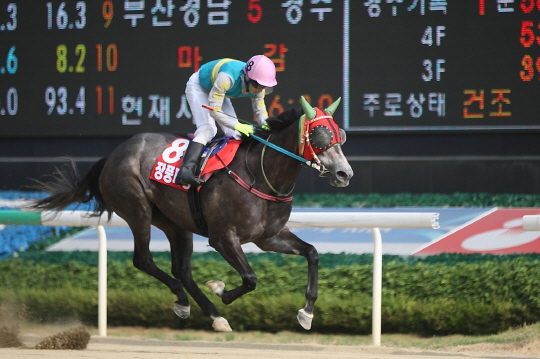 지난해 코리안더비 7위 뒤 올해 5차례 경주서 복승률 80%를 기록하며 전성기를 되찾은 3연승 도전마. 지난 4월 '장풍파랑'과의 1800m 맞대결에서 6마신 반 차로 우승을 차지한 바 있어 이번에도 활약이 기대된다. (통산성적=20전 4승·2위 5회 3위 3회·승률 20%·복승률 45%)