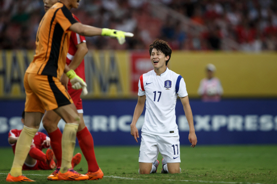 한국은 후반 47분 정동호의 크로스를 김신욱이 문전 오른쪽에서 힐킥으로 방향을 바꿔놓는 재치를 발휘했지만, 이번에도 리명국의 손에 걸리며 땅을 쳤다. 결국 경기 종료 휘슬이 울리면서 승부는 무승부로 마무리 됐다.