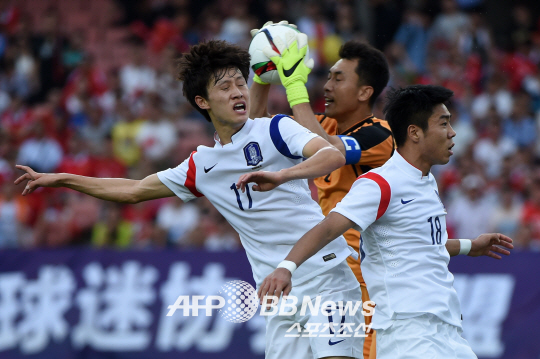 일방적인 공세에 슈팅 세례는 멈추지 않았다. 전반 12분 이종호, 13분 장현수의 중거리 슈팅에 이어 15분에는 이정협이 왼발 슈팅을 날렸다. 북한은 최전방의 리혁철을 제외하고 전원이 골문 앞에 섰다. 전반 39분 또 한번 기회를 잡았다. 이주용의 땅볼 크로스를 이정협이 그냥 흘려보냈다. 기다리고 있던 이재성이 회심의 왼발 슈팅을 날렸지만 리명국의 손끝에 걸렸다. 전반 슈팅수는 14대1, 골은 시간 문제인 듯 했다.