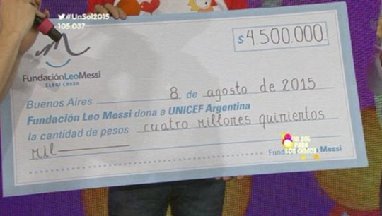 '기부천사' 리오넬 메시(바르셀로나)가 유니세프(UNICEF, 국제연합아동기금)에 31만5000파운드(한화 약 5억7000만원)를 기부했다.