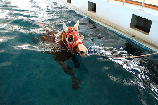 경주마의 여름훈련에 가장 요긴하게 쓰이는 이색 장소로 말수영장이 있다. 불볕더위가 기승을 부리는 한낮에도 훈련을 진행할 수 있으며, 훈련 강도도 트랙을 뛰는 것에 비해 절대 약하지 않다. 수심 3m의 수영장을 한 바퀴 도는데 소모되는 에너지는 1400m 경주로를 전력질주 할 때와 같다고 한다. 한 여름 훈련 장소로 이만한 곳이 없을 것이다.