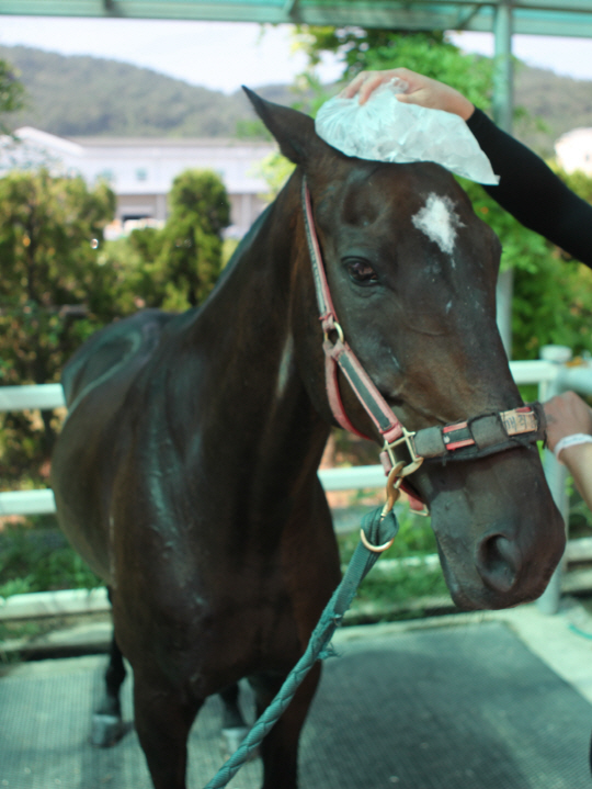 경마장의 말들은 사시사철 운동을 쉴 수 없는 처지다. 무더운 여름이라도 예외는 아니다. 그래서 말들을 관리하는 직원들은 운동을 마친 말들이나 더위에 힘들어 하는 말들을 위해 얼음찜질과 찬물샤워라는 특별 서비스를 제공한다. 얼음찜질은 말의 정수리 혹은 열이 쉽게 오르는 발목, 발굽 부분에 해준다. 차가운 얼음이 처음 피부에 닿을 때는 말들이 깜짝 놀라기도 하지만 곧 기분 좋게 즐기는 모습을 볼 수 있다. 찬물샤워의 경우 특히 배 부분과 엉덩이 부분에 해주는 것을 말들이 가장 좋아하고 열을 식히는데 효과적이라고 한다.