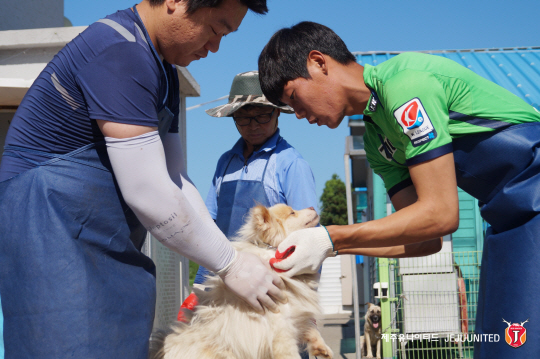 제주 유나이티드(SK에너지 축구단)이 주인의 버림을 받아 갈 곳 없는 유기동물을 따스하게 감싸주었다.