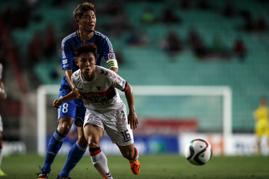 울산이 균형을 맞췄다. 후반 21분 포항 진영 오른쪽 측면에서 발생한 울산의 프리킥 기회에서 포항 수비진의 눈이 김신욱에게 쏠린 사이 제파로프의 낮고 빠른 왼발 프리킥이 골포스트를 맞고 그대로 골망을 갈랐다. 김신욱의 힘이었다. 윤 감독은 후반 19분 이명재 대신 김태환을 투입하며 공세에 불을 지폈고, 포항은 후반 23분 라자르를 빼고 김태수를 투입하며 반전을 모색했다.