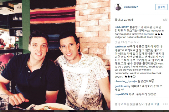 수원 입단을 위해 지난달 22일 한국 땅을 밟은 일리단은 한 달도 안돼 불가리아인을 만나 외로움을 덜었다. 사연은 이렇다. 일리안은 최근 불가리아에 있는 어머니에게 전화 한 통을 받았다. 일리안의 어머니는 한국에서 활동 중인 불가리아 출신 미남 셰프 미카엘 아쉬미노프가 출연한 한국방송 프로그램을 지켜본 뒤 미카엘이 운영하는 레스토랑에 꼭 한 번 가보라고 추천했다.