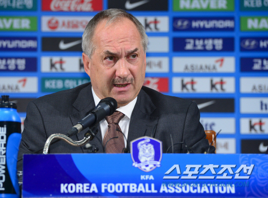 2018 러시아월드컵 아시아지역 2차예선 2연전에 나설 슈틸리케호의 명단이 발표됐다. 24일 오전 서울 신문로 축구협회 다목적회의실에서 슈틸리케 감독이 선수명단을 발표하고 있다. 이날 뽑힌 선수들은 9월 3일 화성종합경기타운에서 열리는 라오스전과 8일 레바논 원정에 출전한다. 정재근 기자 cjg@sportschosun.com/2015.08.24/