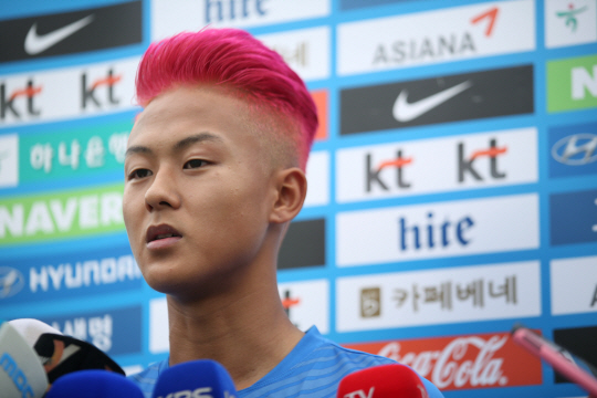 24일 파주NFC(국가대표 트레이닝센터)에 모습을 드러낸 이승우(17·바르셀로나B)의 머리는 핫핑크색으로 빛났다. 언제나 톡톡튀는 이승우 다웠다. 내달 2일부터 열리는 2015년 수원 컨티넬탈컵 U-17 국제 청소년 축구대회에 참가하기 위해 파주NFC에 소집된 이승우는 "머리색을 바꾼 특별한 이유는 없다. 스페인에서는 미용실에 잘 안가기 때문에 한국에 올 때마다 바꾸고 싶었다"고 시크하게 말했다.