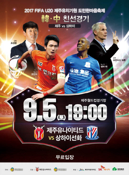 제주 유나이티드(SK 에너지 축구단)가 중국 슈퍼리그 상하이 선화와 친선경기를 치른다.